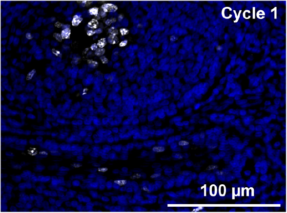 Human tonsil stained with Ki67 (white).